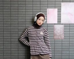 Tome Ame - Nijiko Longsleeve Brown - Atasan Knit Motfif Garis