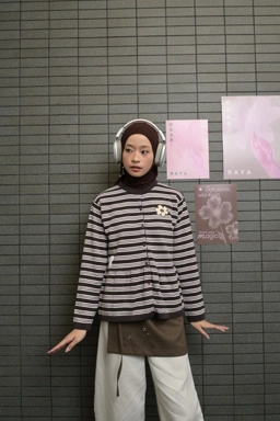 Rasakan kenyamanan dengan Nijiko Longsleeve yang menonjolkan tekstur halus dan motif garis lembut yang terlihat menggemaskan. Atasan ini memiliki siluet yang jatuh pas di badan dengan kerah tegak minimalis. Dilengkapi kancing aktif di bagian depan dan hiasan bunga kecil, atasan ini adalah pilihan tepat untuk menambahkan lapisan pakaian yang hangat, nyaman, dan manis.