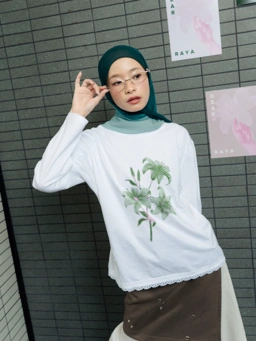 Ariri T-shirt hadir dengan nuansa putih bersih yang dihiasi motif bunga artistik sebagai titik fokus di bagian depan. Atasan ini memiliki potongan santai yang dipermanis dengan detail renda halus di sekeliling ujung bawah baju, memberikan sentuhan tekstur yang berbeda. Bahannya yang lembut dan menyerap keringat menjadikan kaos ini sangat nyaman digunakan seharian, cocok dipadukan dengan celana denim atau rok favorit untuk aktivitas santai. Fabric: Combad 24S